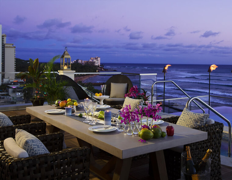 에스파시오가 선사하는 최고의 미식을 경험해보세요. 포브스 5스타 레스토랑 ‘무겐’에서의 와인 페어링이 포함된 프리픽스 디너와 함께, 와이키키 석양 아래 루프탑에서 샴페인 & 캐비아를 즐기는 잊지 못할 순간이 기다립니다.