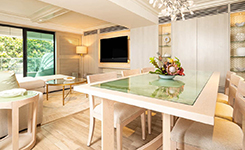 에스파시오에서 경험하는 새로운 차원의 프라이버시와 럭셔리. 모든 스위트는 전 층을 단독으로 사용하는 프라이빗 공간으로, 전용 엘리베이터 입구, 현대적인 셰프 키친, 스파에서 영감을 받은 욕실, 그리고 야외 데이베드와 욕조가 있는 넓은 발코니가 갖춰져 있습니다. 2베드룸 스위트에는 개인 업무 공간이, 3베드룸 스위트에는 가족이나 그룹 여행객이 여유롭게 머물 수 있는 넓은 공간이 마련되어 있어, 프라이빗하면서도 품격 있는 휴식을 선사합니다.