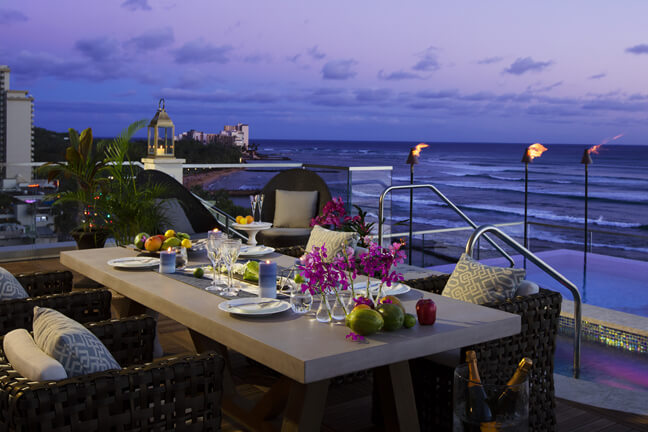 에스파시오가 선사하는 최고의 미식을 경험해보세요. 포브스 5스타 레스토랑 ‘무겐’에서의 와인 페어링이 포함된 프리픽스 디너와 함께, 와이키키 석양 아래 루프탑에서 샴페인 & 캐비아를 즐기는 잊지 못할 순간이 기다립니다.